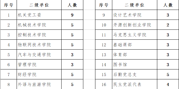 2.各二级单位人员要求如下(不与学校党委理论学习中心组成员重复):