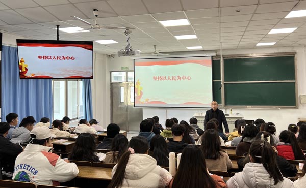 根据马克思主义学院相关教学安排,本学期校领导主要讲授了《坚持党的全面领导》《坚持以人民为中心》《奋进新时代 启航新征程——学习贯彻党的二十大精神》等思政课教学专题。《坚持党的全面领导》专题中,校领导从为什么坚持党的领导,怎样理解党的领导是全面的、系统的、整体的,怎样才能做到自觉在思想上政治上行动上同党中央保持高度一致三个层面进行讲授,让同学们了解中国特色社会主义的本质特征和制度优势;《坚持以人民为中心》这一专题则以视频《人民情怀》导入,让同学们了解人民是创造历史的动力,人民立场是中国共产党的根本政治立场。