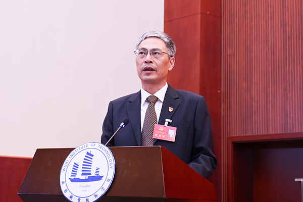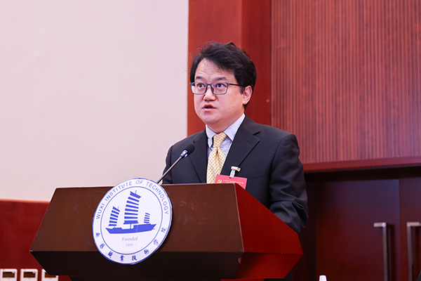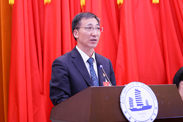 中国民主建国会无锡职业技术学院支部主委冯臻代表学校各民主党派组织,向大会召开表示热烈的祝贺,并预祝大会取得圆满成功。他表示,学校各民主党派和中共无锡职业技术学院委员会和衷共济、风雨同舟,将一如既往积极投身学校各项改革发展事业,为实现学校的发展目标贡献力量。