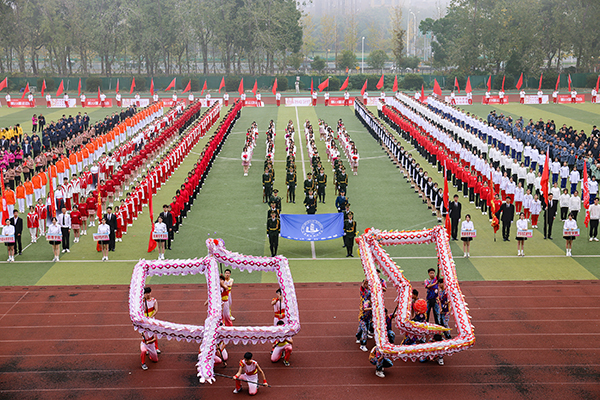 10日上午的开幕式上,校领导龚方红、周桂瑾、杨雪琴、强伟纲、吴慧媛、李衔、奚茂龙及学校相关职能部门、各二级学院负责人在主席台就坐,各代表队热血激昂,步伐铿锵,方阵表演异彩纷呈,充分展现了各个学院特色。