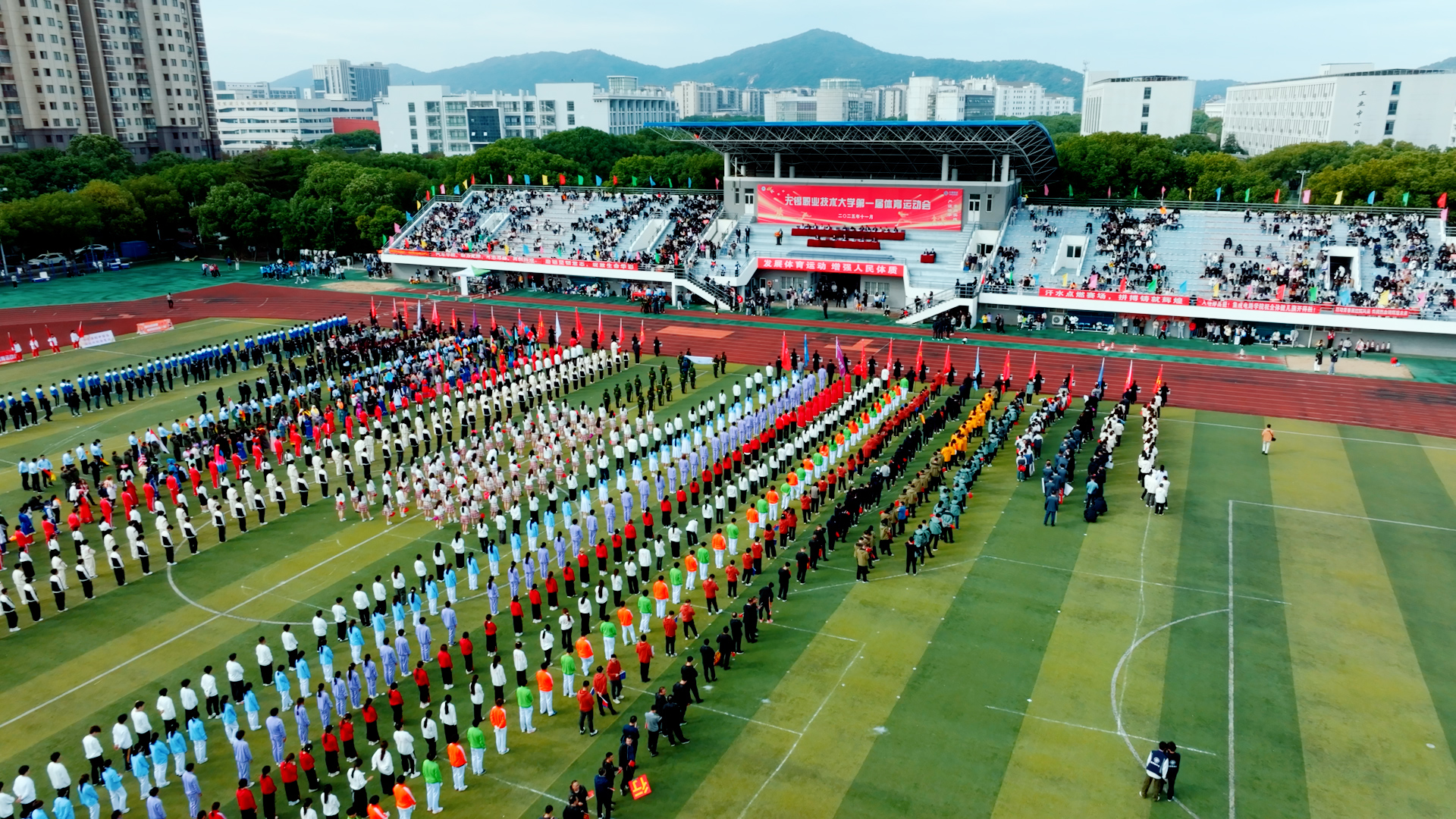 11月6日至7日,无锡职业技术大学第一届体育运动会在太湖校区体育场隆重举行,全校1800多名师生运动员参加了62个田赛、径赛和趣味项目的比拼。