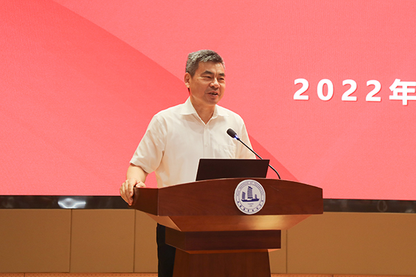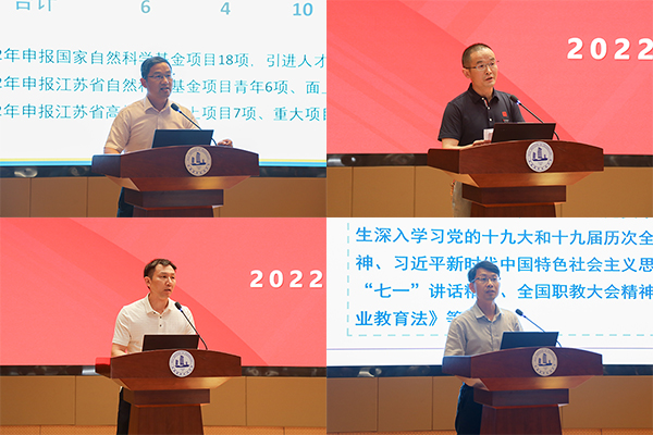 校长龚方红作学校工作报告,回顾了学校2021年及2022年上半年主要工作,分析了学校在职业教育改革发展浪潮中面临的机遇和挑战,并对2022年暑期及下半年重点工作提出要求。龚方红强调,今年是党的二十大召开之年,学校将以高质量发展为主题,不断提高“双高”校建设质量,积极创建无锡职业技术大学,进一步解放思想、凝聚共识,聚焦内涵、提质增效,优化机制、强化考核。他还围绕学校政治建设、职业本科建设、创新教育教学改革、校企合作、师资培养、国际合作交流、学生管理、育人环境等八个方面的18项主要工作进行了具体部署。