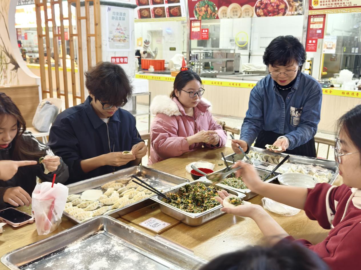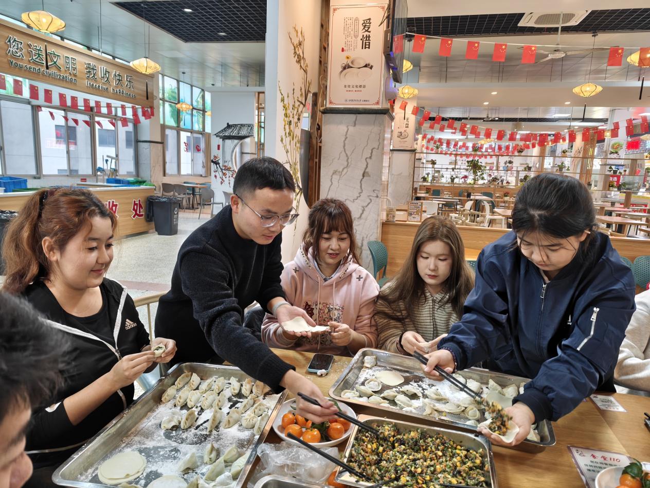 南圆北饺,共暖一冬。为兼顾不同地区的冬至习俗,学院不仅备有饺子,也特意准备了象征团圆的汤圆。热气腾腾的饺子与汤圆相继出锅,师生们围坐一堂,品尝劳动成果,深入交流各自民族的节日习俗与文化故事,在欢声笑语中推进不同民族学生之间情感交融。同学们纷纷表示,这次活动不仅让大家体验了包饺子的乐趣,感受到了冬至的传统韵味,更在互动交流中增进了对不同民族文化的理解与认同,深刻体会到“各民族像石榴籽一样紧紧抱在一起”的意义。