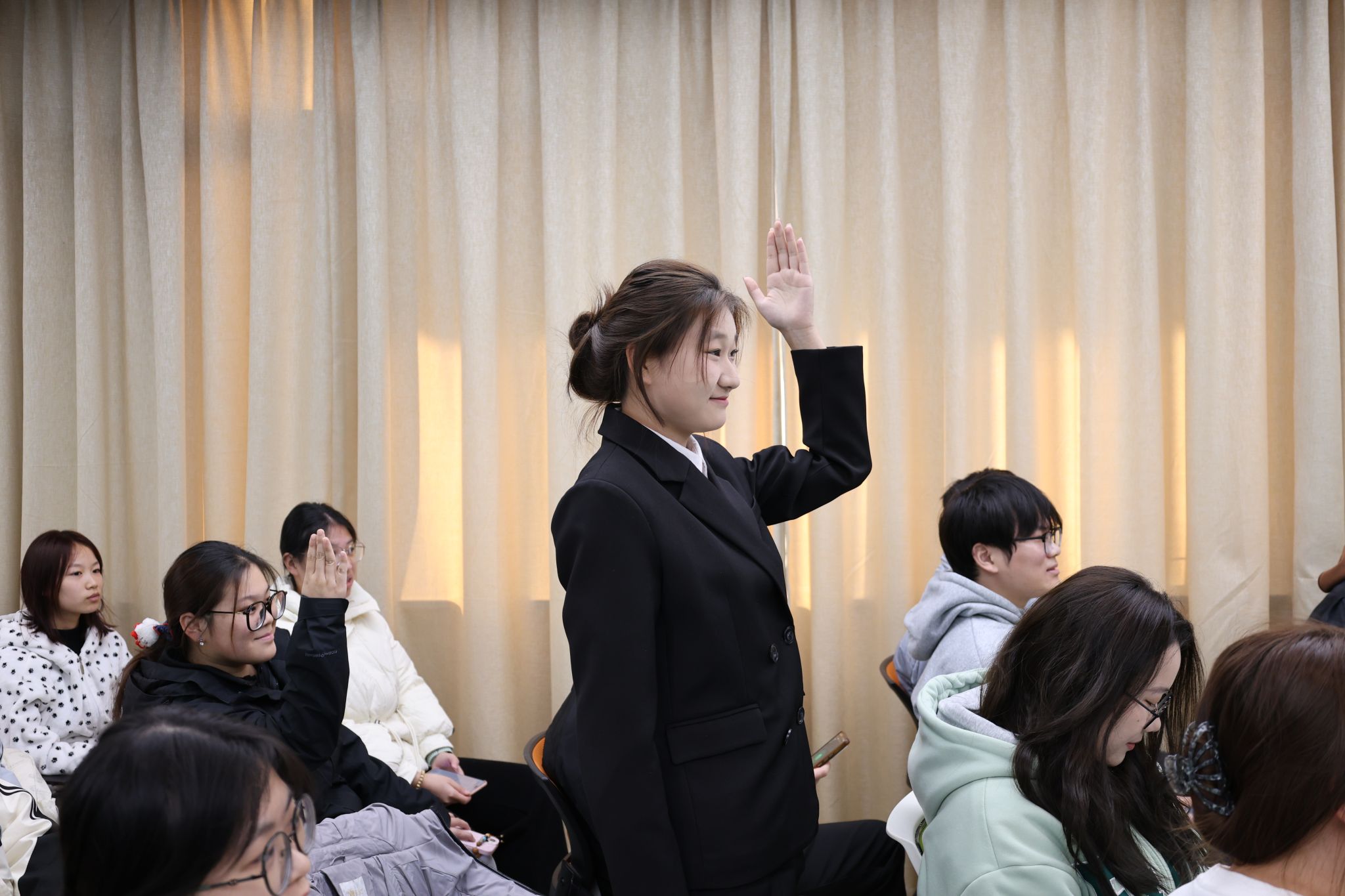活动现场设置的"宿舍知识竞答"与"默契大考验"等互动环节,有效调动了同学们的参与热情。现场气氛热烈,掌声与欢笑声此起彼伏,将整场活动不断推向高潮。